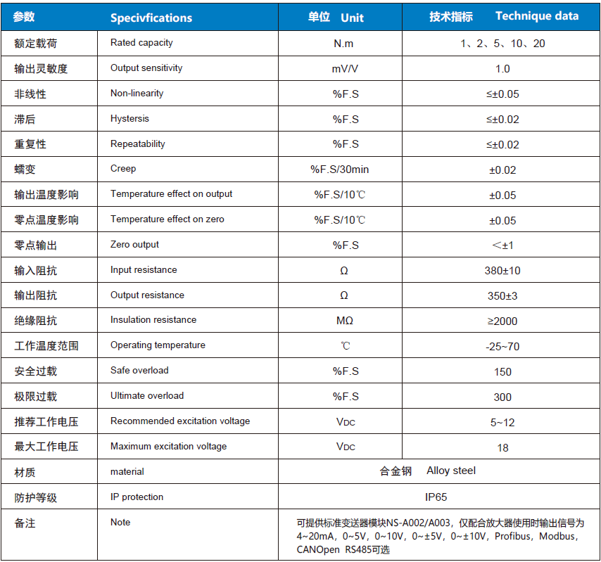 量程0~20Nm,精度±0.1%F.S