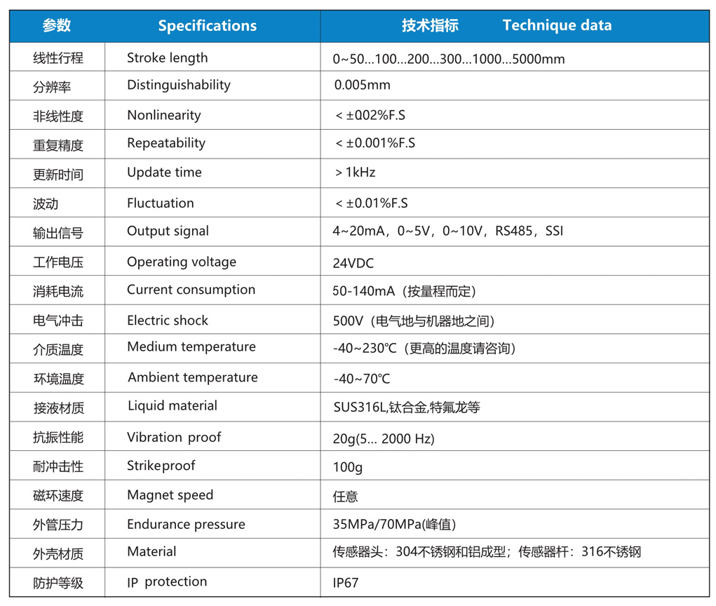 NS-WY08E系列 磁致伸縮液位傳感器