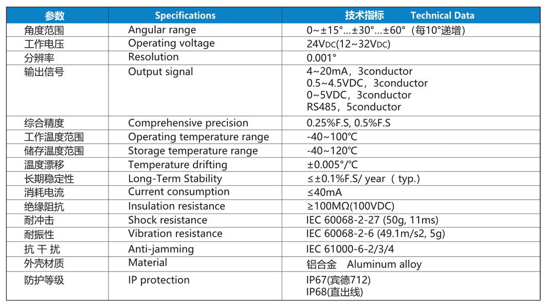 測(cè)量角度最大達(dá)±60°,分辨率達(dá)到0.001°